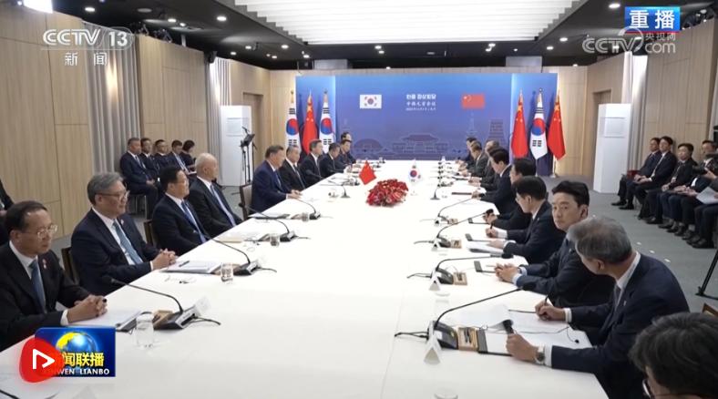 當(dāng)?shù)貢r(shí)間11月1日下午,韓國(guó)總統(tǒng)李在明同中國(guó)國(guó)家主席習(xí)近平在慶州博物館舉行會(huì)談。