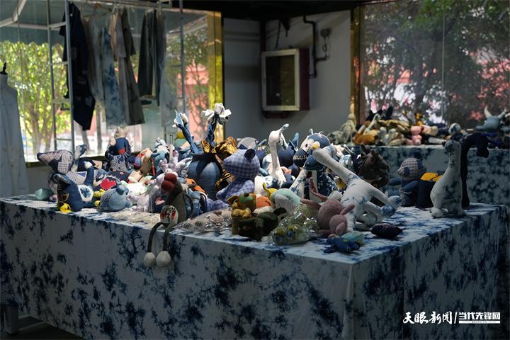 走進吾土吾生的展廳,靛藍染就的衣服、拼布點綴的布包、刺繡裝飾的抱枕琳瑯滿目。這些融入布依文化元素的文創(chuàng)產(chǎn)品,背后藏著200余名本地婦女的生計與驕傲,公司創(chuàng)始人韋祥龍始終堅守“人與自然和諧共處”的古法理念,同時創(chuàng)新植物染配色工藝,染出了年輕人追捧的莫蘭迪色系。