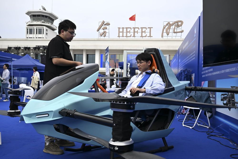 2025年9月21日,觀眾在2025世界制造業(yè)大會(huì)“全空間無(wú)人體系成果展”上體驗(yàn)由安徽猛獅航空科技有限公司展出的一款無(wú)人駕駛飛行摩托。新華社記者 黃博涵 攝