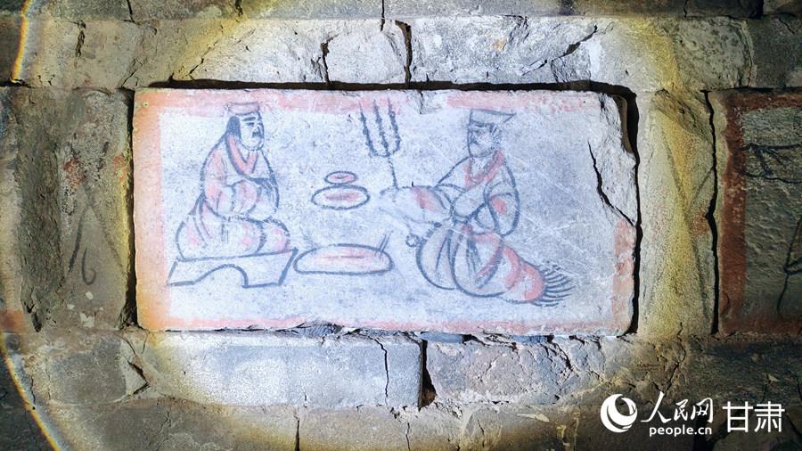 一路向西,采訪團(tuán)來(lái)到嘉峪關(guān)新城魏晉墓群。該墓群占地面積13平方公里,分布著1400多座古墓葬,現(xiàn)存720余幅磚壁畫(huà)多以連環(huán)畫(huà)的形式出現(xiàn),猶如一部1800年前的“生活紀(jì)錄片”?!斑@些壁畫(huà)和高臺(tái)的是同類題材,互為補(bǔ)充?!奔斡P(guān)魏晉墓文物管理所工作人員盧曉玲說(shuō)。
