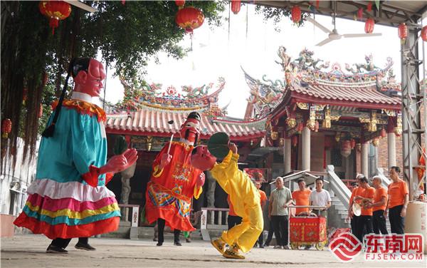 浦南古儺參加廟會(huì)表演。李斌 供圖 漳州市薌城區(qū)流傳著一種古老的儺舞形式——浦南古儺,又稱“大神尪”。據(jù)民間傳說(shuō),浦南古儺始于唐朝末年,最早是當(dāng)?shù)鼐用裼褓悤?huì)、驅(qū)逐疫鬼的一種儀式,后來(lái)逐漸增加了迎祥祈福、酬神納吉的功能,演變?yōu)閭鹘y(tǒng)的民俗活動(dòng)。在逢年過(guò)節(jié)、重大慶典或民間活動(dòng)中,都可以看到“大神尪”的表演。2011年5月,浦南古儺入選第三批國(guó)家級(jí)非物質(zhì)文化遺產(chǎn)擴(kuò)展項(xiàng)目名錄。 浦南鎮(zhèn)現(xiàn)有兩尊“大神尪”:一尊是七品縣官形象,另一尊是書童形象?!按笊駥丁钡闹谱魇且灾駰l為材料編成鼓形竹筐,外罩繡有精美圖案的服飾。表演時(shí),由舞尪人鉆進(jìn)尪里用肩膀扛起,戴上面具,“縣官”手握“國(guó)泰民安”或“風(fēng)調(diào)雨順”的牌子,“書童”舉著扇子,踩著伴奏鑼鼓的節(jié)奏舞蹈,另有一“大頭娃娃”在他倆之間蹦蹦跳跳?!按笊駥丁钡奈璧竸?dòng)作既夸張又滑稽。近年來(lái),學(xué)者研究發(fā)現(xiàn),浦南“大神尪”與臺(tái)灣宜蘭地區(qū)的“大神尪仔”的外形、制作方法和表演形式、功能作用基本相同。 我國(guó)儺文化中的形象以自然界神靈,鬼怪宗教神仙、神話傳說(shuō)以及動(dòng)物圖騰為多,浦南“大神尪”卻以“七品縣官”為形象,作為驅(qū)邪逐疫的主角,這在全國(guó)儺文化中是極為罕見(jiàn)的。浦南“大神尪”對(duì)于研究我國(guó)儺文化、閩臺(tái)民間信仰淵源傳承關(guān)系極具重要價(jià)值。 |