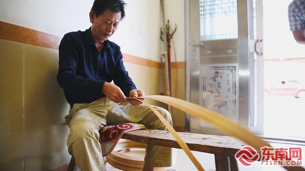 黃進(jìn)泉制作蒸籠。東南網(wǎng)記者江瑞鑫 攝 莆田北岸經(jīng)開區(qū)位于忠門半島,這里素有手工制作蒸籠的傳統(tǒng)。2018年,忠門蒸籠制作技藝被列入第六批莆田市級(jí)非物質(zhì)文化遺產(chǎn)代表性項(xiàng)目名錄。 忠門蒸籠制作是用富有彈性的柳杉,配以柔韌的竹片和山藤材料,經(jīng)過(guò)精心加工制作而成。蒸籠制作工序分配料、卷彎、鎖夾、藤扎諸道。配料制作以皮刀劈工見長(zhǎng),能把炊柴劈成厚度0.4厘米的炊料,且分毫不差。制作蒸籠的主要工具有皮刀、裁刀、刨刀、鉛子和炊夾(鐵夾和木夾)。 莆田人即使遠(yuǎn)赴他鄉(xiāng),仍然不忘帶上蒸籠。制作蒸籠的柳杉吸水性較好,蒸出來(lái)的饅頭、包子皮軟而干;柳杉獨(dú)特的木質(zhì)香味能持續(xù)散發(fā)幾十年,其所蒸的食品帶著淡淡的清香,別有風(fēng)味,那便是鄉(xiāng)愁的味道。 |