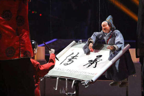 提線木偶表演需通過(guò)精準(zhǔn)操作、細(xì)膩控制,讓木偶完成摟抱、打水、穿衣、寫書法、拉京胡等動(dòng)作,或立或臥、或嗔或笑,活靈活現(xiàn)地演繹出世間百態(tài)。