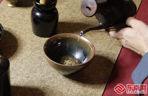 點茶展示。東南網(wǎng)記者 肖練冰 攝 分茶是中國古代一種獨特的飲茶方式,又稱茶百戲、水丹青,即將煮好的茶注入茶碗中的技巧。在宋代,人們把茶百戲與琴、棋、書并列,是士大夫喜愛與崇尚的一種文化活動。 茶百戲是在點茶基礎(chǔ)上用清水畫畫的藝術(shù),茶湯中圖案的形成與點茶時茶湯的泡沫有密切關(guān)系。茶百戲可以使點茶形成的湯花瞬間顯示瑰麗多變的景象:如山水云霧,狀花鳥魚蟲。 茶百戲與福建武夷山淵源頗深,宋代閩北武夷山一帶,是點茶原料(團(tuán)餅茶)和點茶器具(建盞)的重要產(chǎn)地,因此茶百戲十分盛行。但是在歷史上相當(dāng)長的一段歲月里,由于點茶法不再盛行,茶百戲逐漸衰落,清代后失傳。點茶是茶百戲的關(guān)鍵環(huán)節(jié),為了找回茶百戲這項古老的技藝,福建省武夷山市章志峰歷經(jīng)20余年不懈實踐,悟出了失傳已久的中國古代點茶法,完整復(fù)原了茶百戲。茶百戲也在2017年正式列入福建省第五批省級非物質(zhì)文化遺產(chǎn)代表性項目名錄。 |