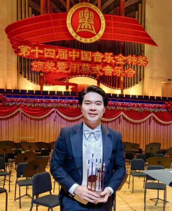 林自豪金鐘獎(jiǎng)捧杯 受訪者供圖 半路“出家”的音樂(lè)奇才 在很多人的印象里,學(xué)習(xí)藝術(shù)是一門童子功,許多獲得成績(jī)的藝術(shù)家都是從小就開(kāi)始嚴(yán)格的訓(xùn)練。林子豪則不同,他的父親林希是福建師范大學(xué)音樂(lè)學(xué)院碩士生導(dǎo)師,母親也是一名音樂(lè)老師。雖然他出身音樂(lè)世家,但他從小最愛(ài)的一直都是籃球和足球,這兩大愛(ài)好一直陪伴了他整個(gè)青春。 “我雖然在音樂(lè)的環(huán)境中長(zhǎng)大,但從沒(méi)有想過(guò)學(xué)習(xí)聲樂(lè)。從小就不怎么唱歌,中學(xué)唱最多的就是哼幾句周杰倫?!绷肿雍栏嬖V記者,有的時(shí)候父親在家里給學(xué)生上課時(shí),他都出去打球,不然鋼琴聲、唱歌聲,很難讓他專心做作業(yè)。 走入聲樂(lè)的世界,源于高三時(shí)的一次巧合。有一次,林子豪放學(xué)回家,母親還沒(méi)回來(lái),林父說(shuō),“要不你唱兩首歌來(lái)聽(tīng)聽(tīng)吧。”于是,父親彈琴,林子豪演唱。在林子豪看來(lái),這不過(guò)是父子倆無(wú)聊時(shí)的消遣,但在林父眼中,他發(fā)現(xiàn)了兒子嗓音上的閃光點(diǎn)。 “我覺(jué)得走音樂(lè)路是十分辛苦的,從小就不培養(yǎng)兒子走這條路?!弊鳛橐啡说牧窒1硎?,對(duì)于兒子他一直奉行的是快樂(lè)教育,自從發(fā)現(xiàn)了兒子嗓子的閃光點(diǎn)后,他常常以“上了一天學(xué)了,回家先放松放松,咱們唱會(huì)兒歌吧”為由,教他唱歌,慢慢培養(yǎng)他的興趣。 在他的引領(lǐng)下,2006年,林子豪考入福建師范大學(xué)。進(jìn)入聲樂(lè)世界的林子豪很快就展現(xiàn)出了天賦,他本科二年級(jí)就獲“福建省第二屆大學(xué)生藝術(shù)節(jié)大學(xué)生歌手賽”學(xué)生專業(yè)組美聲第一名;本科四年級(jí)時(shí)就代表福建參加CCTV全國(guó)青年歌手大獎(jiǎng)賽,斬獲福建賽區(qū)金獎(jiǎng)并闖入全國(guó)總決賽。 本科期間,林子豪為了專業(yè)上的精進(jìn),他放棄了寒暑假的休息娛樂(lè),選擇在國(guó)家大劇院觀摩學(xué)習(xí)?!霸趪?guó)家大劇院,歌劇排演的所有細(xì)節(jié),導(dǎo)演工作的步驟、與樂(lè)隊(duì)合作的全過(guò)程,還有那些著名歌唱家的表演為我打開(kāi)了一扇藝術(shù)的大門?!?o:p>