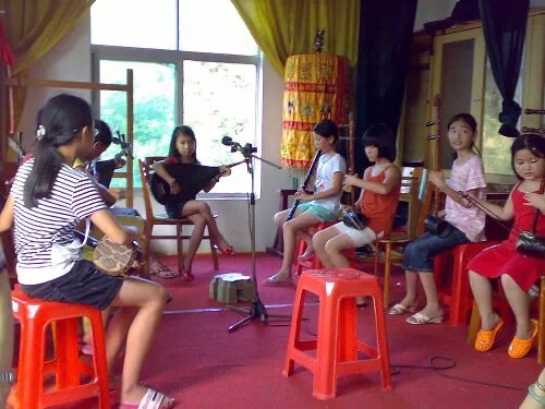后排左數(shù)第四是莎莎 受訪者供圖 莎莎名叫李莎莎,是土生土長的泉州晉江人,90后的她,學(xué)唱南音已經(jīng)有20個(gè)年頭。她還記得,最初學(xué)南音那年,她剛9歲。 “我奶奶喜歡看戲,我小時(shí)候經(jīng)常跟奶奶去我們當(dāng)?shù)氐哪弦羯缛タ磻颍_始我就是跟著去玩的?!鄙f,起初,她只是覺得南音社里一群人聚在那里很熱鬧,而且每次去都有糖果吃。 但時(shí)間久了,耳濡目染之下,幼小的莎莎就成了南音社的一名小學(xué)員?!懊刻煜挛绶艑W(xué)后和周末,都要去社團(tuán)學(xué)習(xí)。”跟學(xué)習(xí)其他戲曲一樣,學(xué)唱南音也要經(jīng)歷一段艱難的蛻變過程,這個(gè)過程漫長而又痛苦。 “南音的曲子最短的也有四五分鐘,長的有半個(gè)小時(shí)以上,所有的唱詞都要背下來。還要學(xué)習(xí)琵琶、二弦、三弦等樂器。”莎莎回憶說,當(dāng)時(shí),自己每次都提前一個(gè)多小時(shí)到課堂,“一個(gè)人練譜子、背唱詞,就是想比別人記得快一點(diǎn)”。 但慢慢地 ,和莎莎一起學(xué)南音的小姐妹陸續(xù)離開了南音社?!白疃嗟臅r(shí)候二三十個(gè)人,學(xué)到最后,只剩我們8個(gè)?!鄙f,堅(jiān)持學(xué)下來的人少,除了學(xué)習(xí)難度大、需要背的東西多外,還有一個(gè)重要的原因,就是南音實(shí)在太古老了。 “這種傳統(tǒng)的劇種很多人聽不來,不喜歡這種咿咿呀呀的唱腔,小時(shí)候就經(jīng)常被人家取笑?!鄙€記得。不僅如此,在泉州當(dāng)?shù)兀性谠岫Y上請(qǐng)南音社團(tuán)演唱的習(xí)俗。因此,一度南音被一些人認(rèn)為是不入流的,而對(duì)于演唱南音的人,也難免會(huì)帶有偏見。 盡管如此,莎莎還是堅(jiān)持了下來,她花了七八年的時(shí)間,學(xué)會(huì)了南音的6種唱法和5種主要樂器。到現(xiàn)在,她能熟練演唱近80支南音曲目。 一度放棄南音 卻在新媒體上打開新大門
