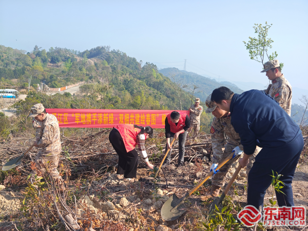 植樹現(xiàn)場 東南網(wǎng)3月12日訊(通訊員 許彬彬 文/圖)春回大地,新綠初綻。近日,莆田市涵江區(qū)退役軍人事務(wù)局聯(lián)合區(qū)人武部、萩蘆鎮(zhèn)共同組織開展“軍地攜手添新綠,雙擁共建繪春圖”植樹活動。涵江區(qū)退役軍人事務(wù)局干部職工、民兵代表、萩蘆鎮(zhèn)干部職工及志愿服務(wù)隊等參加。 植樹現(xiàn)場,大家分工協(xié)作、配合默契、干勁十足,揮鍬鏟土、放苗回填、培實新土、拎桶澆水……各個環(huán)節(jié)銜接有序、有條不紊,忙得不亦樂乎,勞動場面熱火朝天。 手植一抹綠,心栽一片林。一鍬土,種下的是樹苗,成長的是軍民情;一桶水,澆灌的是土壤,收獲的是魚水情。一棵棵象征軍民友誼的“長青樹”,在春風(fēng)中昂然挺立,煥發(fā)出勃勃生機,為春日的涵江增添一片盈盈新綠。 植一抹新綠,共一片藍天。此次軍地攜手植樹活動,是涵江軍民對“綠水青山就是金山銀山”理念的有力踐行,生動展現(xiàn)軍民團結(jié)一心、互助友愛的精神風(fēng)貌,為雙擁共建工作注入新活力,進一步增強軍民魚水深情。 |