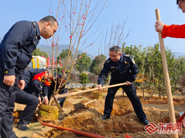 植樹活動。寧德高速執(zhí)法支隊供圖 當(dāng)天上午,陽光明媚,微風(fēng)和煦,參與活動的干部職工們身著統(tǒng)一服裝,手持鐵鍬、水桶等工具,來到林厝服務(wù)區(qū)附近的植樹現(xiàn)場。隨后,在工作人員的指導(dǎo)下,大家迅速投入到緊張的植樹工作中。有的揮鍬挖坑,有的扶樹培土,有的澆水灌溉,現(xiàn)場一片熱火朝天的勞動景象。經(jīng)過一個多小時的努力,共種植樹苗近百棵,為林厝服務(wù)區(qū)周邊增添了一片生機勃勃的綠色。