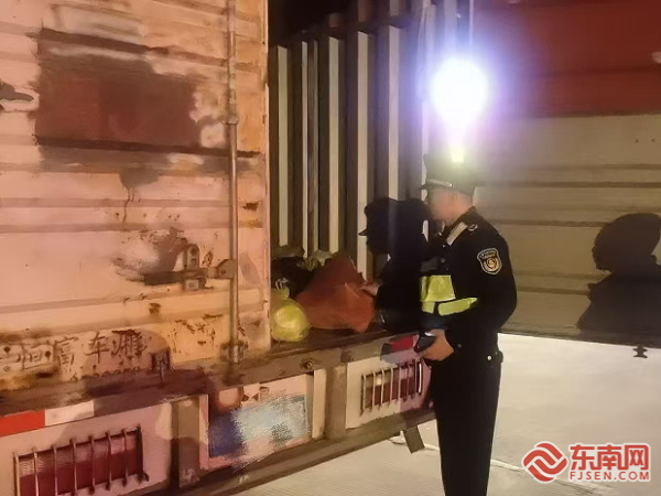 執(zhí)法人員檢查證件。寧德高速執(zhí)法支隊供圖 晝夜聯(lián)動,夜間突查超限運輸。3月10日晚,福安北中隊聯(lián)合轄區(qū)高速交警開展夜間治超專項行動,精準(zhǔn)打擊貨運車輛違法超限運輸行為。執(zhí)法人員采取 “定點布控 + 流動巡查” 的模式,在轄區(qū)收費站設(shè)置臨時檢查點,通過目測車輛外廓尺寸、核驗電子運單、檢查貨物固定情況等方式,對過往車輛進行嚴(yán)格篩查。