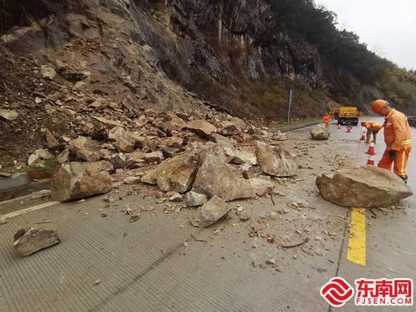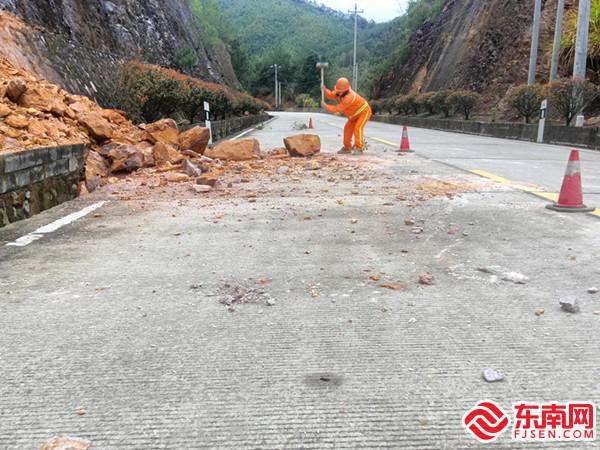 桂口公路站職工正在黃溪坑村路段清移落石。 東南網(wǎng)3月17日訊(通訊員 徐紫瑩 鄧林寧 張?jiān)畦矗?月15日凌晨1時(shí)許,沙縣桂口公路站站長(zhǎng)黃水南接到險(xiǎn)情消息:省道308線沙縣區(qū)黃溪坑村路段有落石占據(jù)路面,影響通行安全。黃水南迅速組織值班人員到達(dá)現(xiàn)場(chǎng)查看,只見路面上散落大大小小的石塊約75方,其中,較大塊的落石無法依靠人力實(shí)現(xiàn)快速清除,需要機(jī)械配合清運(yùn)。 考慮現(xiàn)場(chǎng)情況后,黃水南當(dāng)即組織人員對(duì)現(xiàn)場(chǎng)進(jìn)行安全布控,將小塊落石清掃干凈、大塊落石移動(dòng)到同一邊,確保有半幅路面可安全通行。同時(shí),在該路段前后都設(shè)置了標(biāo)志標(biāo)牌,提醒過往司乘人員注意。為進(jìn)一步確保通行安全,黃水南和值班人員留在附近安全區(qū)域進(jìn)行現(xiàn)場(chǎng)值守,天一亮,他們便拿著鐵鍬、鐵錘、掃帚等工具,將落石清移到路肩,等待機(jī)械支援。截至目前,三明市公路事業(yè)發(fā)展中心沙縣分中心管養(yǎng)路段共發(fā)生樹木倒伏5處,溜方落石4處,投入搶險(xiǎn)人員26人次。