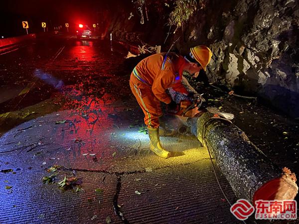 搶險(xiǎn)人員切割大棵樹木。 3月15日凌晨0時(shí)04分,三明市公路事業(yè)發(fā)展中心三元分中心中村公路站接到緊急險(xiǎn)情報(bào)告:受連續(xù)強(qiáng)降雨影響,G534線中村牛領(lǐng)彎道路段高邊坡處的樹木倒伏,阻斷雙向車道,情況緊急。公路部門立即啟動(dòng)應(yīng)急預(yù)案,迅速調(diào)派兩輛搶險(xiǎn)車輛、三名搶險(xiǎn)待命人員,并協(xié)調(diào)兩名中村派出所民警一同趕赴現(xiàn)場(chǎng)。 抵達(dá)現(xiàn)場(chǎng)后,搶險(xiǎn)人員與民警緊密配合,迅速展開行動(dòng)。首先按照安全布控要求,加長(zhǎng)布控距離,確保過往車輛和行人安全。隨后,搶險(xiǎn)人員迅速對(duì)路面上的雜枝樹葉和泥土進(jìn)行清理,同時(shí)啟動(dòng)切割設(shè)備,處理倒伏的大棵樹木,并與民警合力將其移至路旁,完成后再次全面清理路面,確保道路安全暢通。 經(jīng)過近兩個(gè)半小時(shí)的緊張奮戰(zhàn),凌晨2時(shí)50分,搶險(xiǎn)任務(wù)圓滿完成,G534線中村牛領(lǐng)彎道路段恢復(fù)平安暢通。