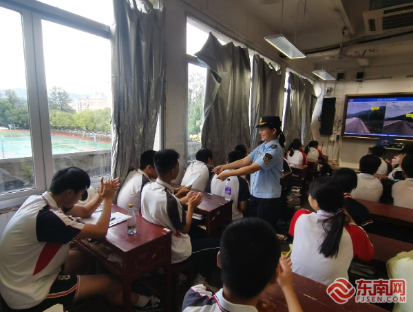 寧德高速執(zhí)法支隊供圖 執(zhí)法人員還化身普法宣傳員,結合《公路法》等法律法規(guī),用通俗易懂的語言解讀相關條文。通過對比班線車與“黑車”在運營資質(zhì)、安全保障等方面的差異,揭露了“黑車”的潛在風險,呼吁同學們自覺抵制非法營運,選擇正規(guī)交通工具出行。 為活躍課堂氣氛并檢驗學習效果,執(zhí)法人員精心設置了快問快答環(huán)節(jié)?!案咚俟奋囕v故障,三角警示牌應放置在多遠距離?”“發(fā)現(xiàn)‘黑車’營運該怎么辦?”面對提問,同學們踴躍舉手、爭相作答。答對的學生收獲了中性筆、筆記本、卡通小熊等精美禮品,在輕松愉快的氛圍中鞏固了安全知識。