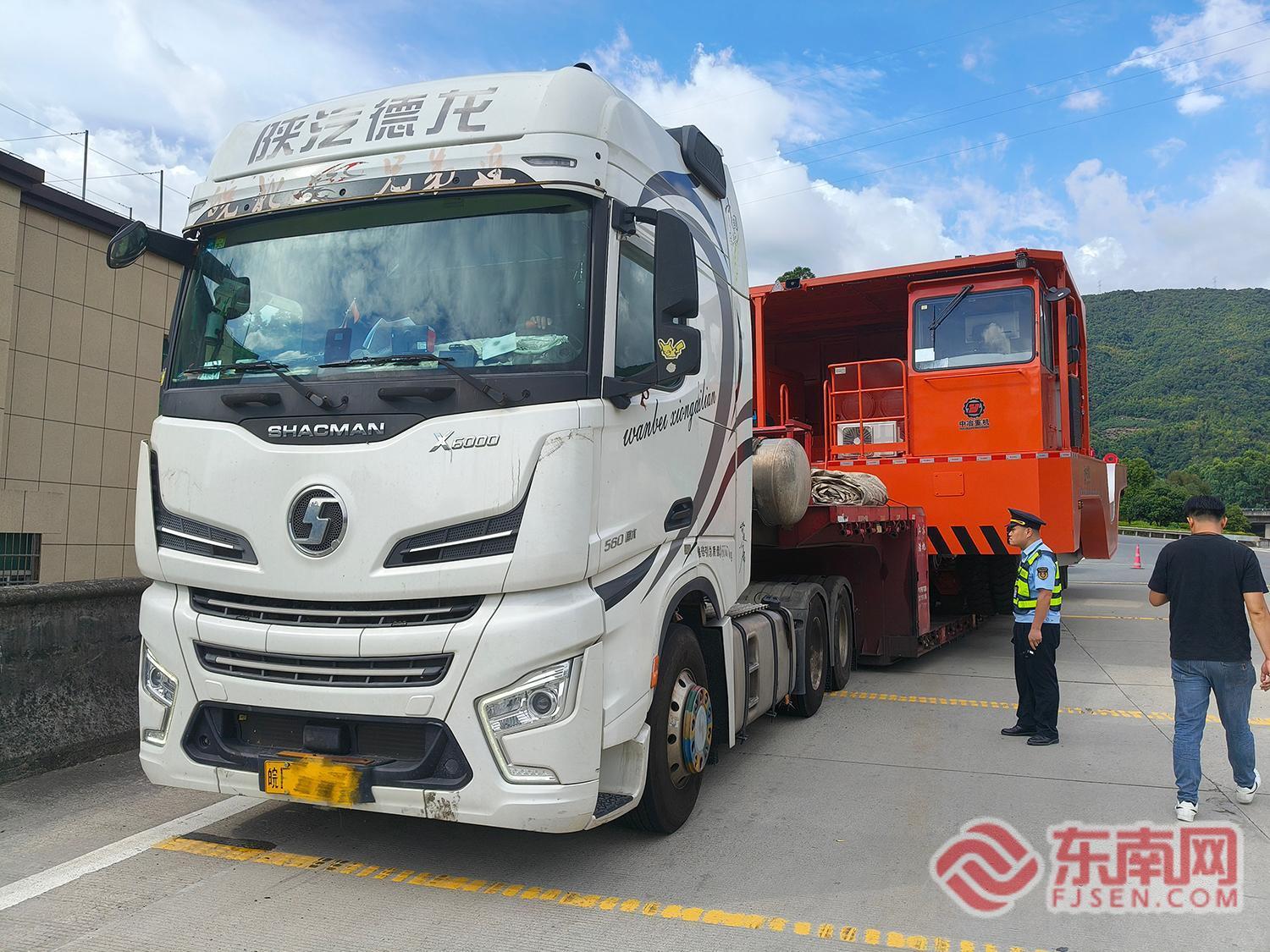 超限車輛在安全區(qū)域等候。寧德高速執(zhí)法支隊(duì)供圖 寧德高速執(zhí)法支隊(duì)賽岐中隊(duì)工作人員發(fā)現(xiàn)情況后,第一時(shí)間安撫司機(jī)情緒,并迅速核查其相關(guān)證件,確認(rèn)手續(xù)齊全有效,為后續(xù)處置奠定基礎(chǔ)。