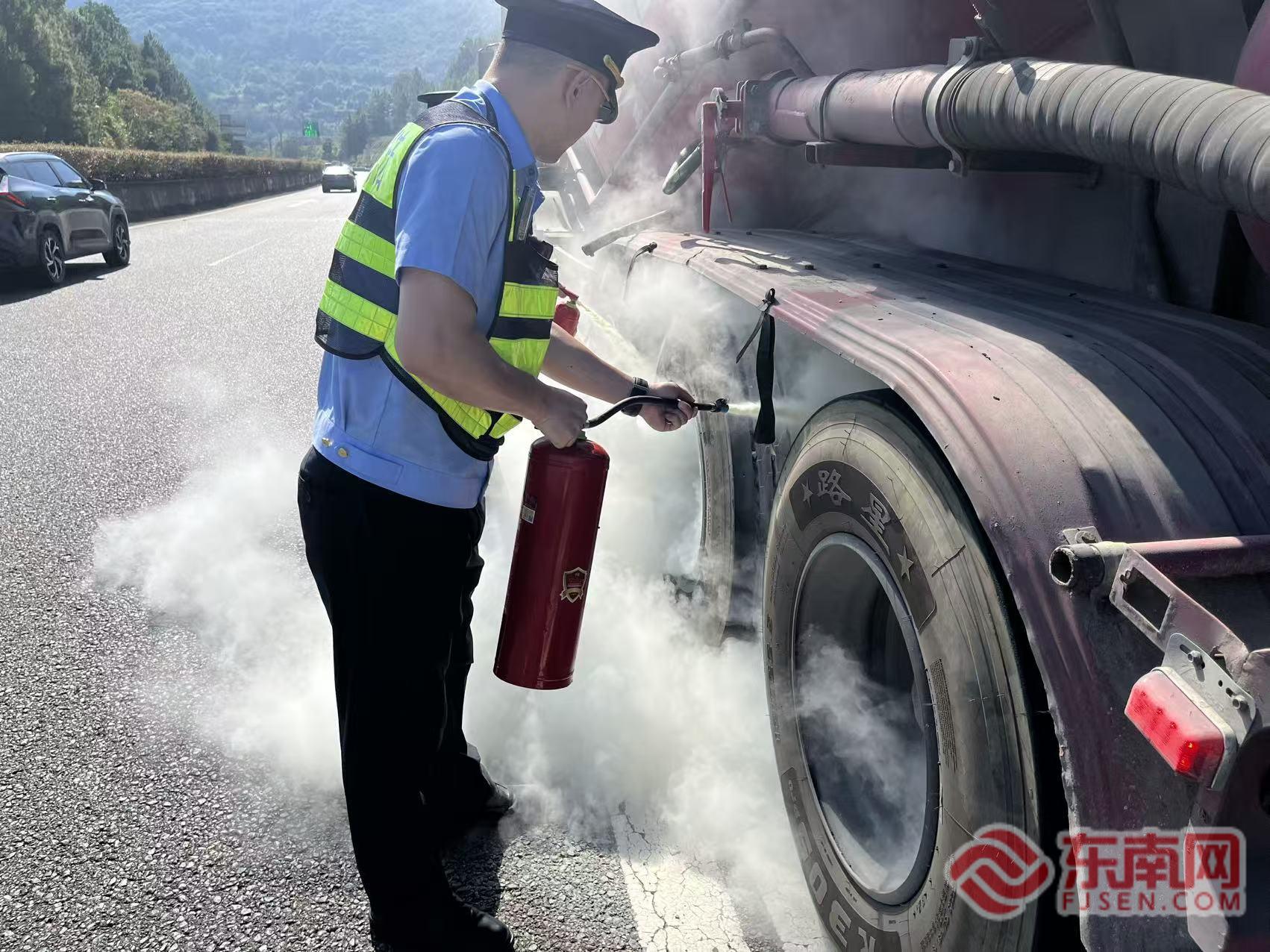 東南網(wǎng)10月9日訊(通訊員 林棟 戚盛楠)“嘭”的一聲,高速大貨車輪胎發(fā)生爆炸,黑煙沖天。10月4日9時(shí)許,寧德高速執(zhí)法支隊(duì)在京臺(tái)高速A1812+70m路段開(kāi)展保暢路巡時(shí),發(fā)現(xiàn)一輛運(yùn)載水泥的貨車輪胎突發(fā)火情,現(xiàn)場(chǎng)濃煙伴隨明火,情況危急。