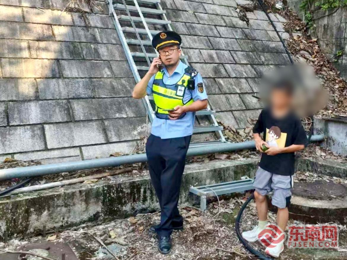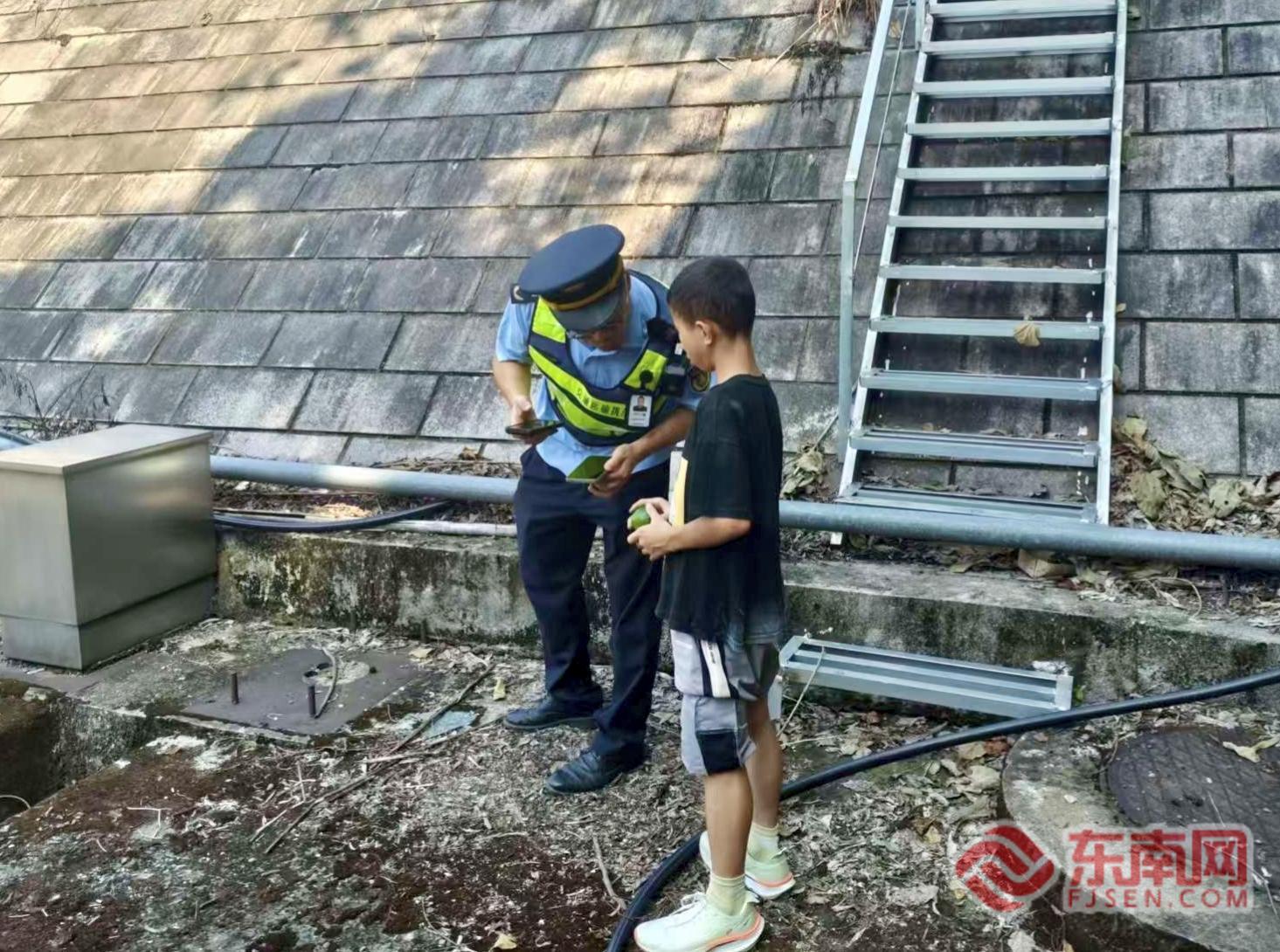 勸離高邊坡玩耍少年。寧德高速公路行政執(zhí)法支隊供圖 執(zhí)法人員立即靠邊停車,迅速做好現場安全布控,隨后上前將少年引導至護欄外的安全區(qū)域。經耐心安撫與詢問,得知該少年是附近白巖村的村民,因天氣炎熱,在隧道口臺階處休息,并未意識到自己已身處險境。