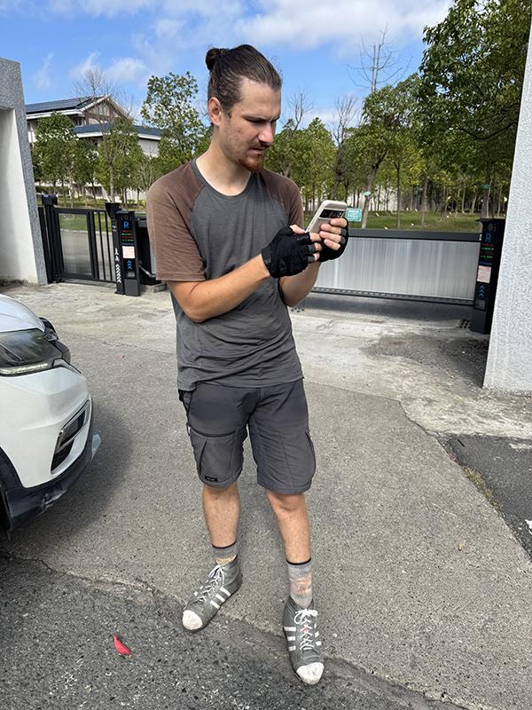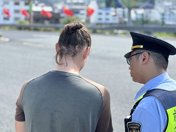外國游客神態(tài)焦急 經(jīng)了解,該游客來自法國,計(jì)劃騎行至客車站,乘坐客車前往福州搭乘渡輪前往臺灣地區(qū)。由于對當(dāng)?shù)芈肪€不熟悉,誤騎行至高速公路收費(fèi)站入口。更令他擔(dān)憂的是,他的中國簽證將在3天后到期,時(shí)間緊迫。 溝通過程中,法國游客情緒一度變得十分焦急,甚至考慮冒險(xiǎn)搭乘路邊的貨車前往福州。執(zhí)法隊(duì)員見狀,首先耐心安撫游客情緒,用手勢和簡單的英語詞匯表達(dá)理解和幫助的意愿,讓游客逐漸平靜下來。