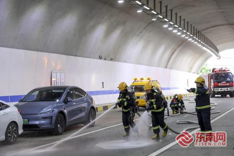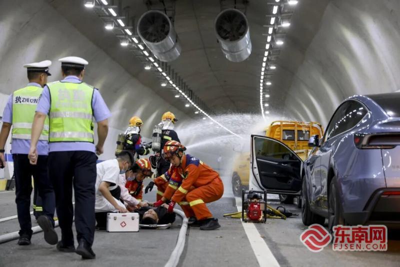 演練模擬現(xiàn)場(廈門公路中心供圖) 東南網(wǎng)10月29日訊(本網(wǎng)記者 劉瑋 通訊員 林萍)10月28日,2025年廈門市交通公路綜合應(yīng)急演練暨交通戰(zhàn)備演練在廈門北站連接線豪巖隧道同安端收官。本次演練由廈門市交通運輸局、同安區(qū)人民政府聯(lián)合主辦,廈門市公路事業(yè)發(fā)展中心、廈門市公路橋隧維護與應(yīng)急中心承辦,同安區(qū)應(yīng)急管理局、同安區(qū)衛(wèi)生健康局、同安區(qū)消防救援大隊、交警等多家單位協(xié)同參演,通過多科目實戰(zhàn)檢驗,全面錘煉應(yīng)急響應(yīng)與協(xié)同作戰(zhàn)能力。 本次演練緊貼廈門實際風(fēng)險特點,設(shè)置三大實戰(zhàn)化搶險科目,各環(huán)節(jié)環(huán)環(huán)相扣,場面緊張有序。 在“隧道事故應(yīng)急搶險救援”科目中,模擬隧道內(nèi)車輛事故引發(fā)險情。應(yīng)急隊伍接到指令后迅速行動,高效完成人員疏散、火情控制、傷員救治等系列操作?;璋捣忾]的隧道環(huán)境下,救援人員配合默契、動作迅捷,展現(xiàn)出過硬的心理素質(zhì)與專業(yè)救援技能。