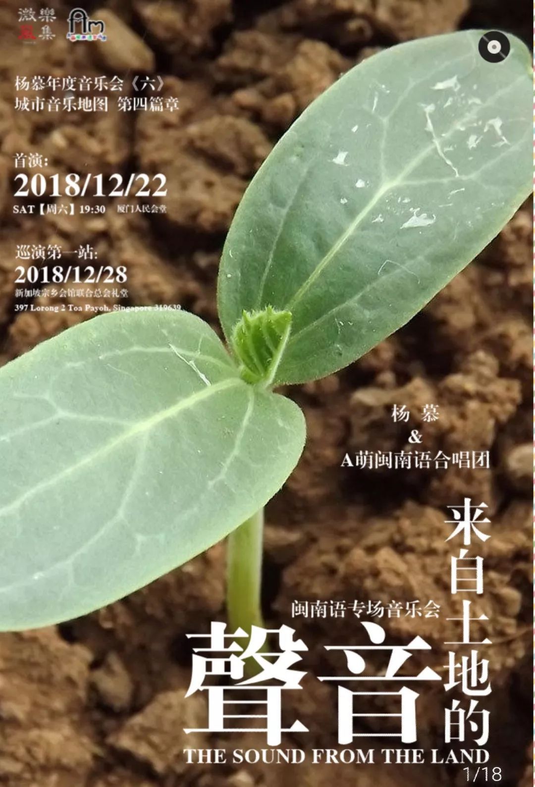 12月22日 臺(tái)灣音樂(lè)家楊慕即將 帶領(lǐng)A萌閩南語(yǔ)合唱團(tuán) 在廈門(mén)市人民會(huì)堂舉辦閩南語(yǔ)專場(chǎng) 音樂(lè)會(huì)《來(lái)自土地的聲音》 再次為廈門(mén)城市獻(xiàn)禮