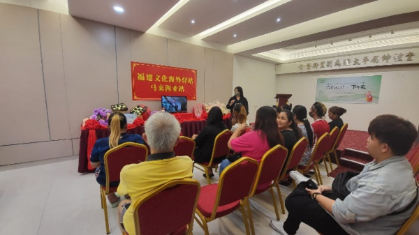 嘉賓觀看福建文旅短片 為讓馬來西亞朋友對福建、“?!蔽幕痛汗?jié)文化有更深刻的認(rèn)識,短片播放后,驛站工作人員準(zhǔn)備了有獎互動問答,引來大家搶答,現(xiàn)場十分熱鬧。驛站工作人員還講解了中國農(nóng)歷新年的起源與習(xí)俗,并為生肖屬兔的現(xiàn)場來賓送上新年禮品。