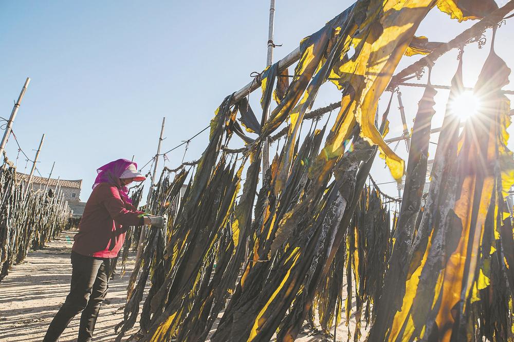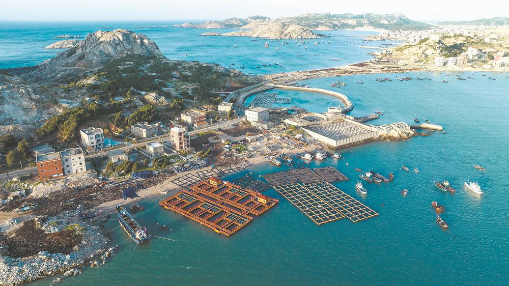 東岱灣海上牧場(chǎng)。 這片海洋牧場(chǎng),是通過人工魚礁、增殖放流等措施,實(shí)現(xiàn)漁業(yè)資源可持續(xù)利用的人工漁場(chǎng)。 2018年底,南日島海域獲批成為我省首家國家級(jí)海洋牧場(chǎng)示范區(qū)。在7.24平方公里的海域上,南日島投放了約7.39萬立方米礁體構(gòu)件,建設(shè)人工魚礁。 “以人工礁體為框架的海洋牧場(chǎng)有獨(dú)特的生態(tài)系統(tǒng),正默默守護(hù)海洋生態(tài)?!绷种竞檎f道,每一個(gè)構(gòu)件單元就是一個(gè)迷你的海洋世界,可以保護(hù)增殖魚類,修復(fù)局部生態(tài),改善水質(zhì)生態(tài),阻止海底拖網(wǎng)作業(yè)。 給海底生物“安新家”后,南日島在“牧場(chǎng)”中持續(xù)開展底播增殖放流,不斷豐富海洋生物多樣性。 “近3年,我們公司放流了魚、蝦、貝等3億多尾(粒)?!痹谀先諐u云萬村,福建省南日島海洋生物技術(shù)有限公司總經(jīng)理陳珍賜告訴記者,公司被農(nóng)業(yè)農(nóng)村部確認(rèn)為珍稀瀕危水生動(dòng)物——雙線紫蛤的增殖放流苗種供應(yīng)單位。 雙線紫蛤是一種名貴的底棲雙殼貝類,是福建省省級(jí)重點(diǎn)保護(hù)水生野生動(dòng)物。由于過度捕撈,雙線紫蛤資源日益枯竭,南日島海域是目前我國雙線紫蛤野生資源唯一生存的海域。 近年來,南日島共放流雙線紫蛤320萬粒。 南日島加快海上養(yǎng)殖轉(zhuǎn)型升級(jí)。2022年,全鎮(zhèn)18236口傳統(tǒng)養(yǎng)殖漁排,全部升級(jí)為環(huán)保型塑膠養(yǎng)殖漁排或深水大網(wǎng)箱;近5萬畝傳統(tǒng)泡沫浮球,升級(jí)為環(huán)保型塑膠浮球,減少海漂垃圾,改善生態(tài)環(huán)境。 海島山體、沙灘、植被等多種類型的整治修復(fù),水土流失治理,岸灘環(huán)境綜合整治,海岸災(zāi)害防護(hù)與生態(tài)修復(fù),海洋生態(tài)監(jiān)測(cè)預(yù)警和防災(zāi)減災(zāi)能力建設(shè)……南日島逐一開展海島“療傷”、岸線修復(fù)工作,正加快補(bǔ)齊生態(tài)短板。 好生態(tài)也慷慨地給予當(dāng)?shù)厝罕姼囵佡?zèng)——2022年,全鎮(zhèn)漁業(yè)產(chǎn)量達(dá)23.38萬噸,產(chǎn)值約53億元,比2012年產(chǎn)值增長(zhǎng)超200%。 “接二連三” 追求漁業(yè)更“優(yōu)” 南日鎮(zhèn)萬峰村,一片海灘上竹竿林立,掛曬的墨色海帶在風(fēng)中搖晃,被夕陽逆光打出“五彩斑斕的黑”。 海帶養(yǎng)殖戶魏桂林整理著海帶,臉上露出笑容,“以往是在沙灘上放置網(wǎng)布,直接將海帶鋪在上面曬,今年試著掛曬,效果不錯(cuò)”。 不遠(yuǎn)處的沙灘還有傳統(tǒng)“沙曬”場(chǎng)。女工們正在逐條翻動(dòng)海帶,抖落沙子再捋直?!皰鞎癖容^節(jié)省人工,只需掛上去,干了再收下來。”說起今年的嘗試,魏桂林覺得滿意,“一樣大的曬場(chǎng)能夠掛更多的海帶,能節(jié)省1/3的用地?!?/p> 最重要的是,掛曬的干海帶含沙量少,品質(zhì)更好,價(jià)格也更高。魏桂林決定:“明年全部掛曬。” 這正是南日鎮(zhèn)政府引導(dǎo)的方向。林志洪表示,為避免因晾曬流失海沙,涵養(yǎng)沙灘,明年起將全面喊停“沙曬”。 靠天吃飯,成本最低,價(jià)值也最低。為減少天氣對(duì)原材料的影響,徹底改變干海帶深加工時(shí)沙子難除盡的問題,南日島上出現(xiàn)了4家大型海帶養(yǎng)殖加工廠,采用鹽漬海帶工藝,改變海帶粗放加工的傳統(tǒng)。