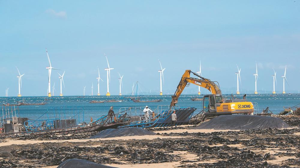南日島風(fēng)電場(chǎng)。 “水上發(fā)電,水下養(yǎng)殖?!蹦先諐u正探索海上風(fēng)電與養(yǎng)殖業(yè)融合發(fā)展。今年8月,在南日島海上風(fēng)電場(chǎng)一期項(xiàng)目B區(qū)北側(cè)海域,全球首個(gè)深遠(yuǎn)海浮式風(fēng)電與養(yǎng)殖一體化設(shè)計(jì)結(jié)合的項(xiàng)目將并網(wǎng)發(fā)電。 項(xiàng)目運(yùn)作方——龍?jiān)达L(fēng)電南日項(xiàng)目負(fù)責(zé)人林燊告訴記者,漂浮式海上風(fēng)電融合深海養(yǎng)殖關(guān)鍵技術(shù)研發(fā)與工程示范項(xiàng)目,2022年5月列入福建省科技重大專項(xiàng),在海上建設(shè)三立柱半潛式平臺(tái),安裝一臺(tái)4兆瓦的海上風(fēng)電機(jī)組,平臺(tái)中間為1萬立方米水體的養(yǎng)殖區(qū)域。 “通過節(jié)約集約使用有限海洋空間,統(tǒng)籌海洋漁業(yè)資源開發(fā),探索出一種‘海上糧倉+藍(lán)色能源’新模式?!绷譄稣f,該示范項(xiàng)目還采用輕質(zhì)柔性光伏組件,真正實(shí)現(xiàn)了風(fēng)、光、漁相結(jié)合。 在全島海帶種植面積最大的云萬村,除了養(yǎng)殖,又多了一項(xiàng)收入。 “村里養(yǎng)殖海帶已有很長(zhǎng)時(shí)間了,沒想到它產(chǎn)生的碳匯量還能用于交易?!蹦先真?zhèn)云萬村黨支部書記林秀清說。 去年9月,南日鎮(zhèn)云萬村、巖下村與廈門產(chǎn)權(quán)交易中心共同簽訂了全國首單村集體海洋碳匯交易合同,實(shí)現(xiàn)碳匯司法公益補(bǔ)償?shù)耐瑫r(shí),43萬元收入全額進(jìn)入村集體賬戶。 “通過這次交易,這兩年形成的5萬多噸碳匯為村集體增收27.8萬元。這筆錢將用于鄉(xiāng)村振興項(xiàng)目投入,回饋村里?!绷中闱逭f,這次碳匯交易后,村民們才知道海帶養(yǎng)殖屬于典型的碳匯漁業(yè)生產(chǎn)方式,除了經(jīng)濟(jì)創(chuàng)收,還有固碳、凈水等作用,大家養(yǎng)殖的積極性更高了。 “下一步將繼續(xù)對(duì)接碳匯交易市場(chǎng),開展海水養(yǎng)殖增匯、濱海濕地和紅樹林增匯、海洋微生物增匯等試點(diǎn)工程,提升綠色產(chǎn)業(yè)碳匯貢獻(xiàn)率?!绷种竞檎f道。 在全域旅游概念叫響的背景下,南日鎮(zhèn)把發(fā)展的目光瞄準(zhǔn)了旅游業(yè),把目標(biāo)定位為海島生態(tài)漁業(yè)觀光游。 5月30日,東岱灣海區(qū)岸邊,一個(gè)面積達(dá)2300平方米的海上新型漁排平臺(tái)正在抓緊建設(shè)。 這是“東岱灣全塑膠漁排和深水抗風(fēng)浪網(wǎng)箱項(xiàng)目”?!绊?xiàng)目將打造成景觀型生態(tài)休閑漁業(yè)發(fā)展和漁旅融合垂釣平臺(tái)?!绷种竞橹钢h(yuǎn)方的海域說道,“經(jīng)過規(guī)劃調(diào)整,東岱灣海區(qū)將投放兩個(gè)平臺(tái),打造體驗(yàn)型度假休閑海上田園綜合體。” 全域科學(xué)規(guī)劃,是南日島為明天打下的基礎(chǔ)。 對(duì)海洋養(yǎng)殖業(yè)科學(xué)規(guī)劃,實(shí)現(xiàn)養(yǎng)殖品種的相對(duì)集中,東岱、坑口海區(qū)主打鮑魚養(yǎng)殖,南港片區(qū)主打海帶,北港片區(qū)專攻龍須菜;合理規(guī)劃漁排數(shù)量、飼料投放與養(yǎng)殖規(guī)模,制止海洋養(yǎng)殖業(yè)的無序擴(kuò)張。 海域集約化利用的同時(shí),現(xiàn)代漁業(yè)攜手“漁旅融合”,在東岱灣海區(qū)、燕里沙灘建設(shè)集養(yǎng)殖及漁村體驗(yàn)型度假為一體的海上田園綜合體,建設(shè)東岱灣景觀型生態(tài)休閑漁業(yè)發(fā)展和漁旅融合垂釣平臺(tái)、墾區(qū)漁旅融合、坑口新型漁排示范基地等,打造集濱海旅游、海鮮美食、漁家體驗(yàn)和文化創(chuàng)意于一體的產(chǎn)業(yè)鏈。 在“國鮑薈”研學(xué)中心附近的福鮑沙灘上,“瞰海音樂餐廳”正在抓緊建設(shè),即將投用。“五一”期間,這邊曾經(jīng)舉辦過帳篷音樂節(jié),“小試牛刀”便已一位難求。 目前,6萬立方米的智能型高端深海養(yǎng)殖裝備與旅游設(shè)施結(jié)合的“閩投秀嶼1號(hào)”正在建設(shè),預(yù)計(jì)今年9月投用;可以270度看海的海洋文化創(chuàng)意園明年將建成,填補(bǔ)島上高等級(jí)旅游酒店的空白。 |