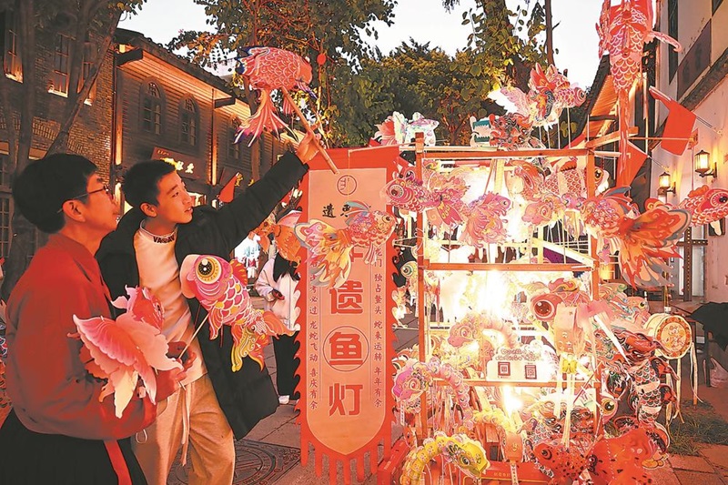 市民在選購(gòu)非遺魚(yú)燈。 賞非遺古韻、逛國(guó)潮市集、品特色美食……1月18日,福州上下杭?xì)v史文化街區(qū)人潮涌動(dòng)。“來(lái)福州,過(guò)福年”2025年福州新春文化旅游月在這里舉行,古老街區(qū)搖身一變成為年味十足的“福街”。 循著悠揚(yáng)的音樂(lè)聲望去,身穿節(jié)日盛裝的小“福娃”正齊聲演唱歌曲《?!?。身著古裝的貨郎推著貨郎車沿街叫賣,國(guó)風(fēng)裝扮的游客、頭戴“三條簪”的女子穿梭于市集中。市民和游客漫步于青磚古巷,沉浸式體驗(yàn)閩韻國(guó)潮“福”文化。 國(guó)潮妝造表演秀《金蛇迎春》中,身著福蛇妝造的國(guó)潮仙子從福巷中款款而出;特色非遺福聲表演《擊缶而歌·福打秀》,以多點(diǎn)聯(lián)動(dòng)的創(chuàng)新表現(xiàn)方式,串聯(lián)起千年閩都的文化記憶與發(fā)展脈絡(luò);《福女簪?!繁硌葜校^戴“三條簪”的女子和詠春拳非遺傳承人同臺(tái)演出,一招一式盡展剛?cè)岵?jì)的力量之美。 在福來(lái)年味新春市集,匯聚了福州風(fēng)味新年食品、福州傳統(tǒng)手作小食等特色產(chǎn)品,不僅為市民游客打造舌尖上的體驗(yàn),還帶來(lái)了非遺手藝、民俗活動(dòng)、年味互動(dòng)等特色文化體驗(yàn)。圍繞“福”文化主題,主辦方還在上下杭、三坊七巷、煙臺(tái)山等地設(shè)置“?!蔽幕蚩ㄑb置,供新春來(lái)榕的游客打卡接福。 由獨(dú)立設(shè)計(jì)師、插畫(huà)師打造的“三條簪”文創(chuàng)產(chǎn)品琳瑯滿目,“三條簪”聯(lián)名創(chuàng)意咖啡飲品吸引游客品嘗,融合了非遺與國(guó)潮元素的“三條簪”文創(chuàng)系列周邊產(chǎn)品、“三條簪”卡通形象IP“福寶”在上下杭?xì)v史文化街區(qū)受到游客熱烈追捧。 “我們聚焦文商旅融合發(fā)展,挖掘閩都文化、‘?!幕?,策劃年味十足的文旅盛宴,就是要推動(dòng)福州傳統(tǒng)文化‘活起來(lái)’‘潮起來(lái)’。”主辦單位相關(guān)負(fù)責(zé)人介紹,本次新春文化旅游月期間,將推出近1000場(chǎng)次的文旅活動(dòng)、文藝展演和50項(xiàng)優(yōu)惠措施,以及八大主題66條精品旅游線路,邀請(qǐng)游客感受有福之州的滿滿福氣。 據(jù)了解,活動(dòng)將持續(xù)至2月17日,其間,福州各縣(市)區(qū)將輪番上演“年味大戲”。本次活動(dòng)是福建“一路山海一路歌”文旅促消費(fèi)主題年的主要活動(dòng)之一,由省文化和旅游廳、福州市人民政府主辦,福州市文化和旅游局、各縣(市)區(qū)人民政府承辦。(記者 郭斌 文/圖) |
