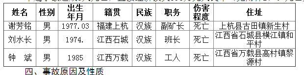 福建將樂安信煤業(yè)有限公司石林煤礦 “9·6”頂板事故調(diào)查報告 2015年9月6日9時30分左右,福建將樂安信煤業(yè)有限公司石林煤礦(以下簡稱“石林煤礦”)發(fā)生一起頂板事故,造成3人死亡,直接經(jīng)濟(jì)損失398萬元。 根據(jù)《生產(chǎn)安全事故報告和調(diào)查處理條例》(國務(wù)院令第493號)、《煤礦安全監(jiān)察條例》(國務(wù)院令第296號)、國家安監(jiān)總局《煤礦生產(chǎn)安全事故報告和調(diào)查處理規(guī)定》及《福建省煤礦生產(chǎn)安全事故報告和調(diào)查處理實施細(xì)則(暫行)》(閩煤安監(jiān)調(diào)查〔2011〕1號)等有關(guān)規(guī)定,福建煤監(jiān)局于9月12日牽頭組織三明市監(jiān)察局、公安局、安監(jiān)局、總工會和煤管局等單位有關(guān)人員組成事故調(diào)查組,并邀請三明市檢察院派員參加,對本起事故開展調(diào)查。事故調(diào)查組下設(shè)綜合組、管理組和技術(shù)組,并聘請2名煤礦相關(guān)專業(yè)的專家對本起事故進(jìn)行技術(shù)性分析和鑒定。經(jīng)過調(diào)查,共制作調(diào)查詢問筆錄22份,收集相關(guān)書證材料194份。現(xiàn)將事故調(diào)查有關(guān)情況報告如下: 一、事故單位基本情況 (一)福建將樂安信煤業(yè)有限公司石林煤礦基本情況 福建將樂安信煤業(yè)有限公司石林煤礦為原將樂縣縣屬國有煤礦,1979年建井,1987年擴(kuò)建后,生產(chǎn)能力為15萬噸/年,2002年6月改制為私營股份制企業(yè),并設(shè)立福建將樂安信煤業(yè)有限公司,公司下屬僅有1對礦井,即:石林煤礦。公司類型為有限責(zé)任公司,法定代表人騰永忠,總經(jīng)理鄭遠(yuǎn)勇。股東分別是:歐陽春霖55%股份,鄭遠(yuǎn)勇10%股份,湯虹10%股份,肖根水10%股份,肖長生10%股份,謝芳銘5%股份。石林煤礦安全管理機(jī)構(gòu)設(shè)置情況為:礦長肖根水,全面負(fù)責(zé)全礦工作;生產(chǎn)副礦長兼技術(shù)負(fù)責(zé)人謝芳銘,負(fù)責(zé)煤礦的生產(chǎn)技術(shù)工作;安全副礦長黃熊輝負(fù)責(zé)全礦的安全監(jiān)管工作,并兼安全科科長;機(jī)電副礦長肖文華負(fù)責(zé)煤礦的機(jī)電管理工作。礦部下設(shè)生產(chǎn)科、安全科、調(diào)度室、供銷科、財務(wù)科、辦公室等職能科室。生產(chǎn)科配備4名專業(yè)技術(shù)人員,科長為吳桂平;安監(jiān)科配備4名專職安全員,科長由安全副礦長黃熊輝兼任;調(diào)度室配備3名調(diào)度管理人員,主任為林晨曦。 石林煤礦為證照齊全的正常生產(chǎn)礦井,核定生產(chǎn)能力15萬噸/年。營業(yè)執(zhí)照號:350000100008504,營業(yè)期限:2004年03月22日至2034年03月21日;采礦許可證:3500000820055;有效期限:自2008年6月27日至2018年6月27日;安全生產(chǎn)許可證號:(閩)MK安許證字[2005]G069,有效期為2015年1月14日至2018年1月13日。礦井瓦斯等級為瓦斯礦井,礦井劃分的水文地質(zhì)類型為簡單類型,兩級排水,礦井通風(fēng)方式為分區(qū)對角式機(jī)械抽出負(fù)壓通風(fēng)。 該礦安全許可的井口有三個,分別是:+175m主井、+300m風(fēng)井和+236m風(fēng)井。礦井采用平硐暗斜井開拓方式,主要開采C3、B9、B20、B4、B12等煤層。礦井分三個水平:第一水平(+345m ~+175m)、第二水平(+175m~-25m)、第三水平(-25m~-225cm)。目前第一水平和第二水平已采完,第三水平為現(xiàn)在的生產(chǎn)水平。第三水平分為五個區(qū)段,即: -65m、 -105m、145m、185m和225m。目前-65m區(qū)段為主要生產(chǎn)區(qū)段,共布置了2采3掘,分別是:-65B9S采、-65B9N采、-65B9N掘、-65C3N掘、-65B9S掘。-105區(qū)段為接替區(qū)段,事故發(fā)生前正在進(jìn)行采掘接替的準(zhǔn)備工作,布置了-105C3N順槽維修工作面。但是,石林煤礦在提供給煤炭行業(yè)管理部門的交換圖紙上沒有體現(xiàn)-105區(qū)段的運(yùn)巷和順槽工作面。 2015年4月復(fù)工以來, 該礦一直處于正常生產(chǎn)狀態(tài),2015年累計生產(chǎn)原煤39205噸。由于9月3日國家組織開展“抗戰(zhàn)70周年閱兵紀(jì)念活動”,將樂縣從8月28日全縣停止火工品供應(yīng),石林煤礦的火工也被收回,全礦所有采掘工作面停工,只有-105m C3北的維修工作面、-65m B9北澆灌水溝和-145m猴車道砌拱等作業(yè)點有正常布置作業(yè)。 該礦全礦職工226人,其中管理人員14人,后勤人員116人,井下采掘人員96人。9月6早班,井下共有3個作業(yè)點,下井人數(shù)共計19人,分別是:-65B9N灌注水溝3人;-105C3順槽維修3人;-145m猴車道砌拱3人;當(dāng)班安全管理人員4人;帶班礦領(lǐng)導(dǎo)1人;提升打點掛鉤工5人。事故當(dāng)班帶班領(lǐng)導(dǎo)是生產(chǎn)副礦長謝芳銘。 (二)事故地點基本情況 本起事故發(fā)生在第三水平-105m區(qū)段的-105m C3N順槽維修工作面,該順槽于2015年7月上旬開始施工,掘進(jìn)約10米時,由于C3煤層比較厚且疏松,不好控頂,當(dāng)時在這個工作面作業(yè)的工人長期采B4、B12等比較薄、比較硬的煤層,工人不適應(yīng),就停工了,直到9月4號早班該礦才安排了另一個班組(劉水長班組)到這個工作面進(jìn)行維修作業(yè)。根據(jù)技術(shù)鑒定專家現(xiàn)場勘查, -105mC3N工作面順槽下出口距-105m區(qū)段車場180 m ,順槽長約13 m,-105mC3運(yùn)輸巷為沿煤層底板掘進(jìn)的全巖巷道,距煤層底板10米,運(yùn)巷每隔40米掘石門與煤層貫通,兩石門間沿煤層拉順槽貫通后進(jìn)行采煤
