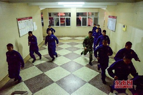 警鈴一響,隊員們就用最快的速度沖下樓,這是他們最為平常的工作狀態(tài)。即使沒有出警,也要經(jīng)常進行演練,時刻保持著戰(zhàn)斗狀態(tài)。東南網(wǎng)記者 林婕攝