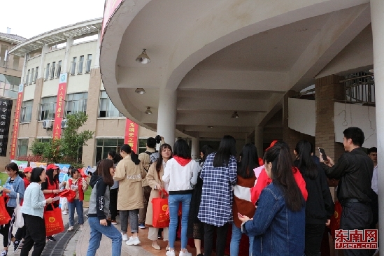 校園防災(zāi)減災(zāi)展板吸引學(xué)生志愿者駐足觀看 東南網(wǎng)記者 陳艷 攝 ? |