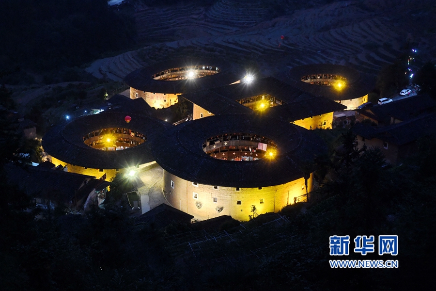 這是南靖縣梅林鎮(zhèn)坎下村的翠美樓夜景圖。新華社記者林善傳攝 福建土樓依山就勢,布局合理,吸收了中國傳統(tǒng)建筑規(guī)劃的“風(fēng)水”理念,適應(yīng)聚族而居的生活和防御的要求,巧妙地利用了山間狹小的平地和當(dāng)?shù)氐纳?、木材、鵝卵石等建筑材料,是一種自成體系,具有節(jié)約、堅固、防御性強(qiáng)特點(diǎn),又極富美感的生土高層建筑類型。