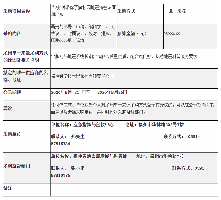 應(yīng)急指揮與宣教中心《2分鐘帶你了解校園地震預(yù)警》畫冊出版單一來源采購公示