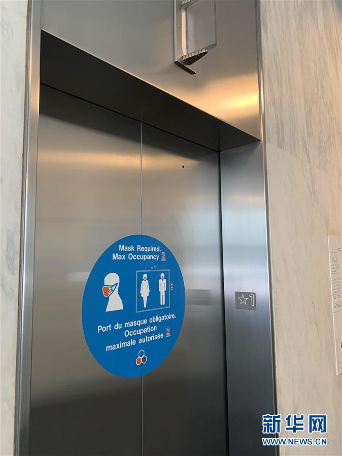 7月20日,在位于紐約的聯(lián)合國(guó)總部,電梯門(mén)上張貼著要求人們?cè)诠矆?chǎng)所佩戴口罩等標(biāo)識(shí)。 新華社記者 王建剛 攝 新華社聯(lián)合國(guó)7月20日電(記者王建剛)受新冠疫情影響而實(shí)行遠(yuǎn)程辦公4個(gè)多月的紐約聯(lián)合國(guó)總部20日進(jìn)入重啟第一階段。按規(guī)定,該階段每天進(jìn)入總部大樓人數(shù)不能超過(guò)400人。 聯(lián)合國(guó)秘書(shū)長(zhǎng)發(fā)言人迪雅里克當(dāng)天在例行記者會(huì)上說(shuō),在此前的重啟零階段,每天約有200至300人進(jìn)入大樓,主要包括安全、維護(hù)和清潔人員及其他聯(lián)合國(guó)工作人員、一些國(guó)家的外交官。進(jìn)入第一階段后,人數(shù)上限為400人,約為正常工作日在樓內(nèi)辦公人數(shù)的10%。絕大部分工作人員仍將遠(yuǎn)程辦公。