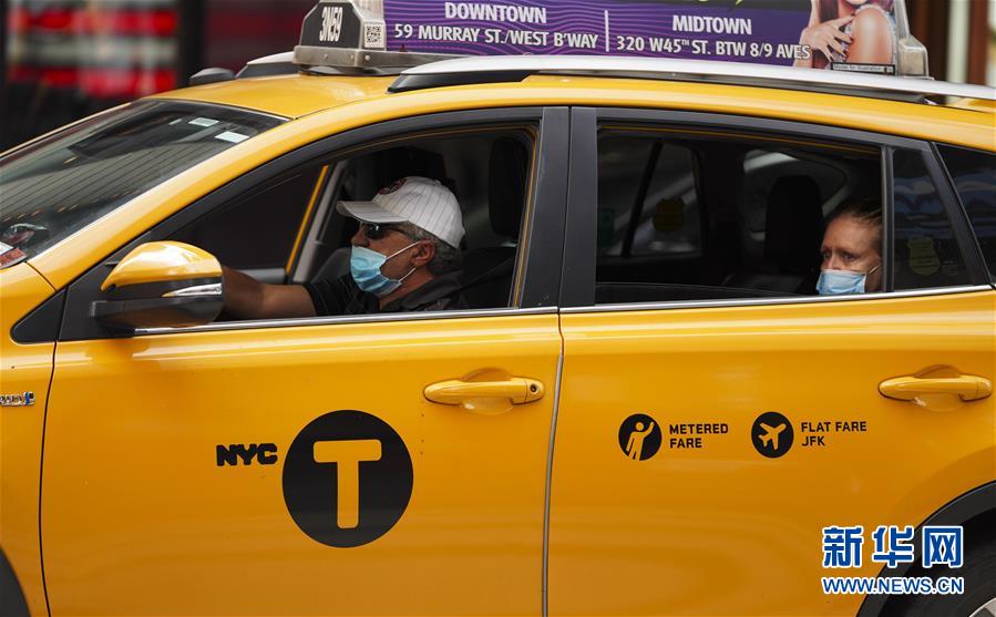 8月19日,一輛出租車駛過美國紐約時報廣場。 新華社記者 王迎 攝