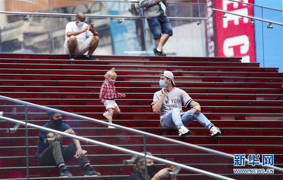 8月19日,在美國紐約,游客在時報廣場休閑。 新華社記者 王迎 攝