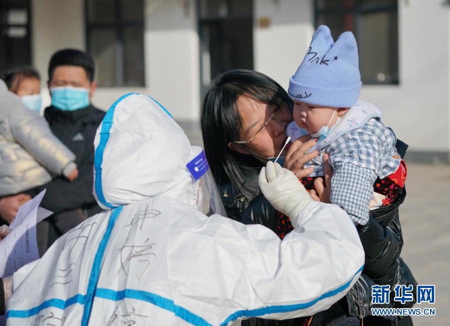 1月18日,檢測(cè)人員在河北省隆堯縣隆堯鎮(zhèn)東河村為村民進(jìn)行核酸檢測(cè)。 當(dāng)日,河北省邢臺(tái)市隆堯縣對(duì)所有常駐和流動(dòng)人口開展第三輪全員核酸檢測(cè)。1月17日,河北省邢臺(tái)市政府召開新冠肺炎疫情防控新聞發(fā)布會(huì),通報(bào)承擔(dān)隆堯縣第二輪核酸檢測(cè)任務(wù)的濟(jì)南華曦醫(yī)學(xué)檢驗(yàn)有限公司涉嫌謊報(bào)檢測(cè)結(jié)果。1月17日,河北省邢臺(tái)市隆堯縣新增2例確診病例,1例無癥狀感染者。 新華社記者 牟宇 攝 |
