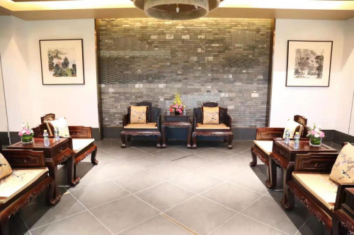 博鰲亞洲論壇主題公園田園外交會(huì)客廳由知名古典家具藝術(shù)家陳玉樹擔(dān)綱主創(chuàng)。會(huì)客廳創(chuàng)作歷時(shí)多個(gè)月,歷經(jīng)前期調(diào)研、風(fēng)格研討、征集素材、創(chuàng)作論證等多個(gè)環(huán)節(jié)。它由陳玉樹作品《松風(fēng)》、《龍瑞》、《大美》、《百子》等組成。