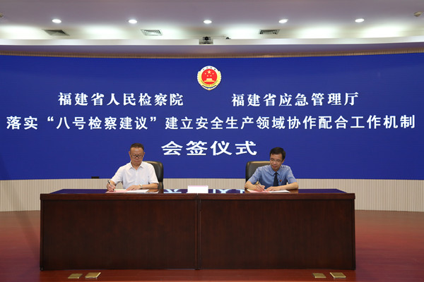 省應(yīng)急管理廳與福建省檢察院會(huì)簽安全生產(chǎn)領(lǐng)域協(xié)作配合工作機(jī)制