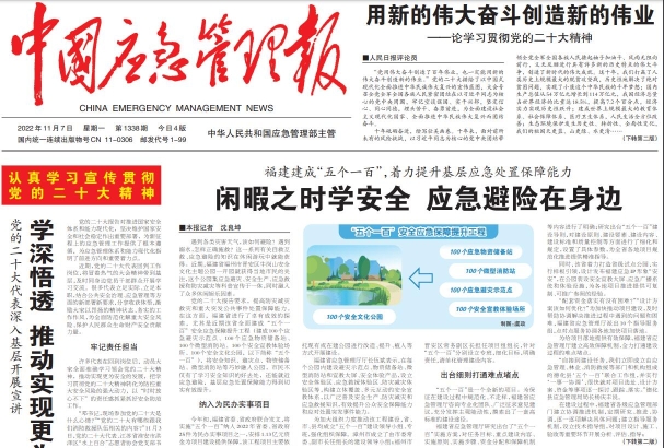 中國應(yīng)急管理報頭版頭條刊發(fā)我省“五個一百”安全應(yīng)急保障提升工程