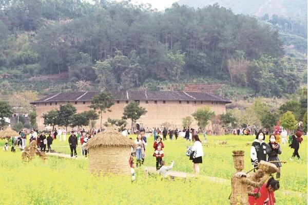 土樓與油菜花海相得益彰 油菜花 滿目金黃春意濃 春節(jié)假期,不少人的朋友圈被華安大地土樓群景區(qū)的油菜花海刷屏。在藍(lán)天白云的陪襯下,遠(yuǎn)處連綿的青山、近處古老的土樓群和這片金黃花海構(gòu)成了一幅醉人的鄉(xiāng)村畫卷。 油菜花海里游人如織,四處可見拍照留影的人,想留住眼前的春色。年輕人們舉起自拍桿,在花叢中定格自己的笑顏。孩子們也找到了樂趣,嬉笑著追逐飛舞的蝴蝶,往花叢深處去。周邊鋪設(shè)了小火車軌道,家長(zhǎng)帶著孩子坐上小火車,不到10分鐘即可將這60畝金色花海的美景賞個(gè)遍。為了更好地留住客人,景區(qū)還在花海中布置了稻草造景,有巨型稻草人、恐龍、大猩猩等卡通造型,吸引不少孩子來“打卡”。 賞過油菜花海,再去逛逛土樓群,行程更充實(shí)。華安大地土樓群由“土樓之王”二宜樓、“福建土樓博物館”南陽(yáng)樓、“宜居典范”東陽(yáng)樓組成,是福建土樓建筑的代表。景區(qū)工作人員透露,多數(shù)游客將逛土樓、賞花打包一起玩。春節(jié)期間,景區(qū)的客流量達(dá)到2.5萬人次,目前日均客流量在1000人左右,熱度不減。 景區(qū)還推出了優(yōu)惠政策,2月28日前購(gòu)買土樓(華安)景區(qū)門票(全價(jià)票70元),可贈(zèng)送秋千谷景區(qū)入園門票或者土樓觀光車車票+油菜花海小火車票。