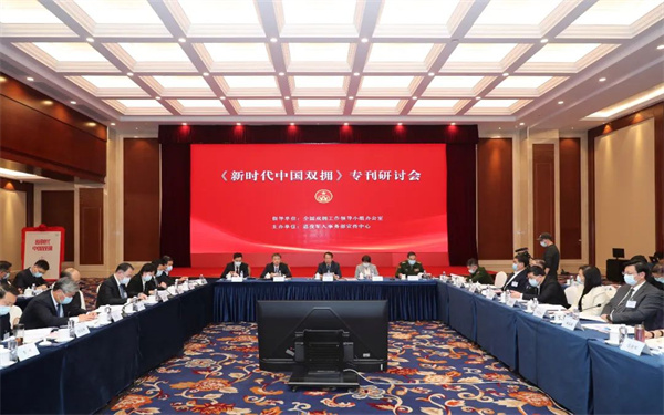 2月24日,《新時代中國雙擁》??杏憰诰┱匍_。圖為研討會現(xiàn)場。曹舒昊 攝 馬飛雄指出,做好雙擁工作,使命光榮,責任重大。習近平總書記對雙擁工作高度重視、深懷感情,指出“雙擁運動是我黨我軍我國人民特有的優(yōu)良傳統(tǒng)和政治優(yōu)勢”,強調(diào)要“根據(jù)時代變化和工作要求,不斷改進創(chuàng)新、與時俱進,全面提高新形勢下雙擁工作水平”。辦好《新時代中國雙擁》???,把雙擁工作闡釋好、挖掘好、報道好、宣傳好,進一步弘揚我黨我軍優(yōu)良傳統(tǒng)、激發(fā)愛國擁軍熱情、凝聚軍政軍民合力,是貫徹落實黨中央關于雙擁工作相關決策部署的務實舉措,是新時代新征程賦予我們的重大政治責任。