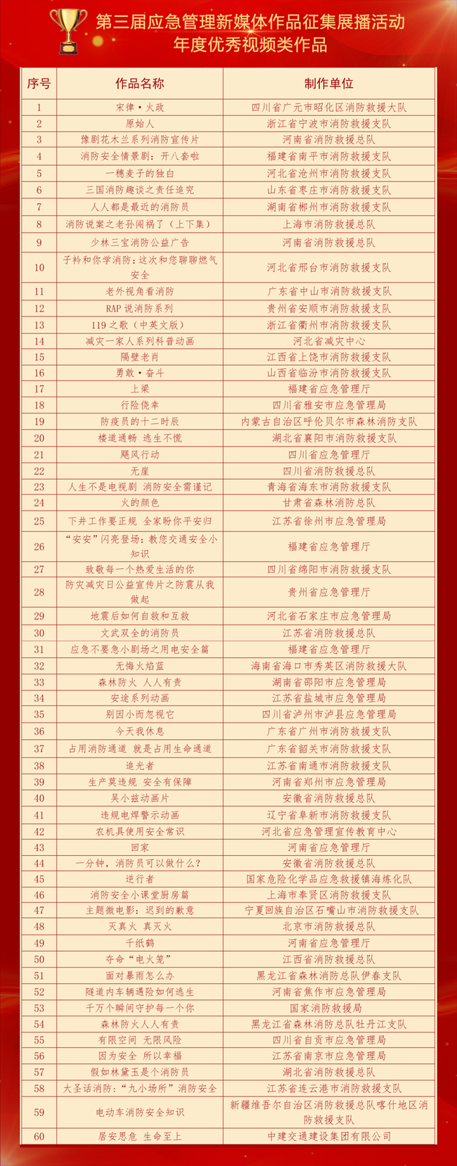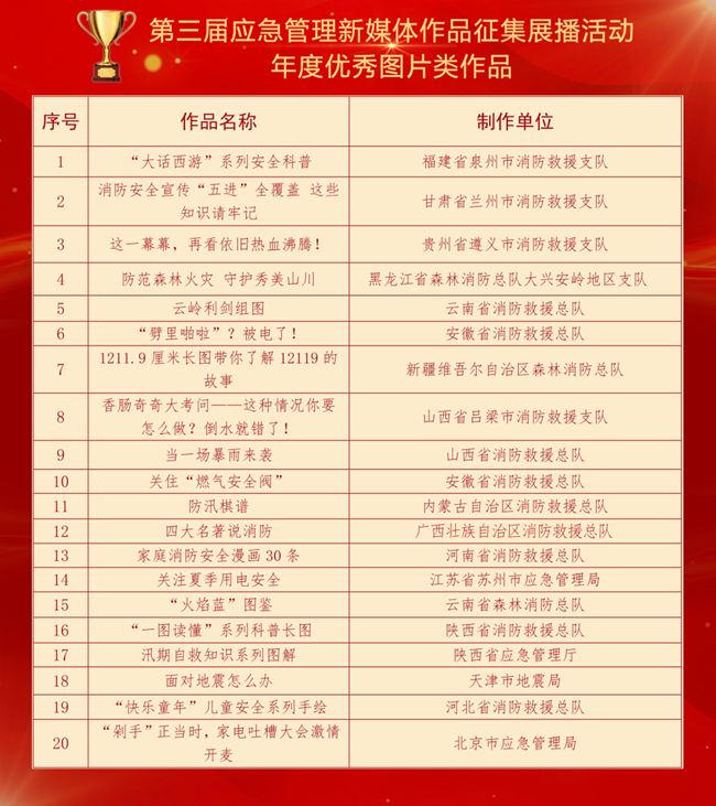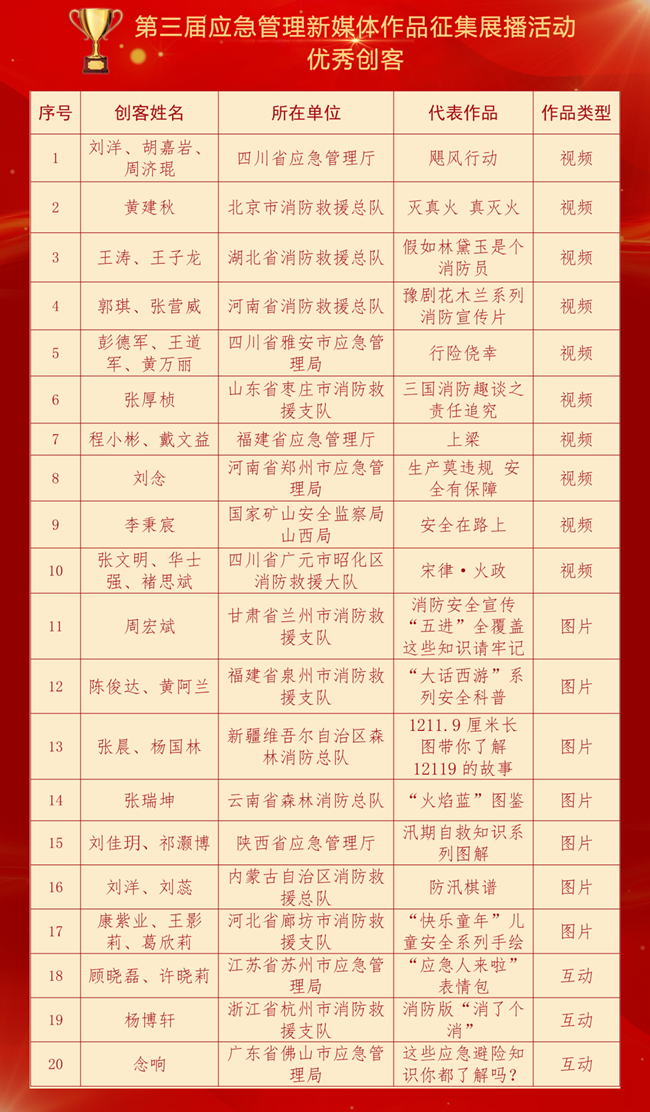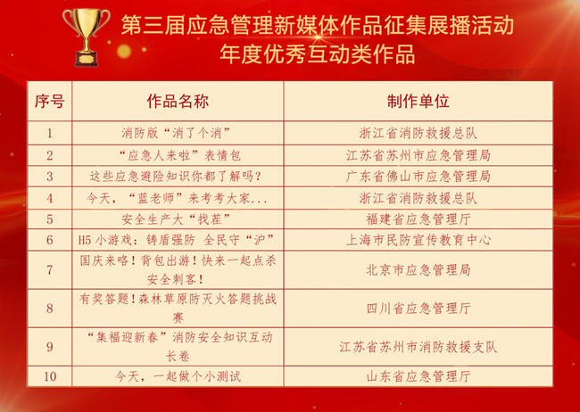 2022年第三屆應(yīng)急管理新媒體作品征集展播活動(dòng)獲獎(jiǎng)名單公布