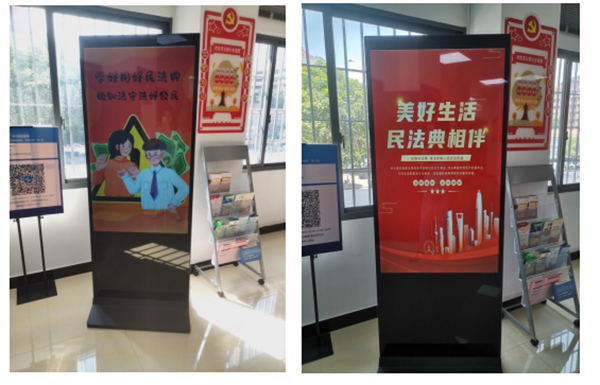 同時,馬尾區(qū)退役軍人服務中心在服務窗口,通過顯示屏滾動播放普法宣傳標語和海報,進一步濃厚普法宣傳氛圍。