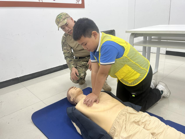 三、自護(hù)技能學(xué)習(xí) 為了讓營員們充分認(rèn)識(shí)了挽救生命最關(guān)鍵的“黃金4分鐘”,掌握正確的自救互救方法,來自福建省星光救援隊(duì)的王清琪老師利用人體模具開展心肺復(fù)蘇的技能教學(xué),教給營員們判斷是否需要實(shí)施心肺復(fù)蘇救援的“三要素”,以及心肺復(fù)蘇的操作要領(lǐng),并讓營員們輪流體驗(yàn)心肺復(fù)蘇的操作流程。