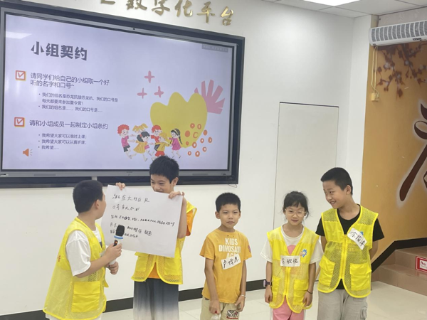 一、小小安全員初相會(huì) 通過豐富有趣的“破冰游戲”營員們漸漸熟悉起來,他們分為四組進(jìn)行“找呀找呀找朋友”的小游戲,每一位營員在紙上描出自己手掌的形狀,在每個(gè)手指上寫下自己的信息,在現(xiàn)場尋找相同特點(diǎn)的朋友。