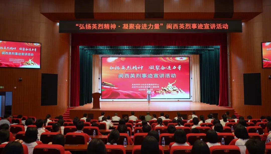 為進(jìn)一步加強(qiáng)青少年的愛(ài)國(guó)主義教育,引導(dǎo)青少年更好地傳承紅色基因、賡續(xù)紅色血脈。7月24日,由龍巖市烈士紀(jì)念設(shè)施保護(hù)中心、永定區(qū)退役軍人事務(wù)局聯(lián)合主辦的“弘揚(yáng)英烈精神·凝聚奮進(jìn)力量”閩西英烈事跡宣講活動(dòng)在永定一中科技藝術(shù)館舉行,永定區(qū)委常委、人武部部長(zhǎng)林建文,永定區(qū)人武部、永定區(qū)退役軍人事務(wù)局全體干部職工,各鄉(xiāng)鎮(zhèn)(街道)退役軍人服務(wù)站站長(zhǎng),部隊(duì)官兵、退役軍人代表及永定區(qū)第一中學(xué)學(xué)生300多人參加了此次宣講活動(dòng)。