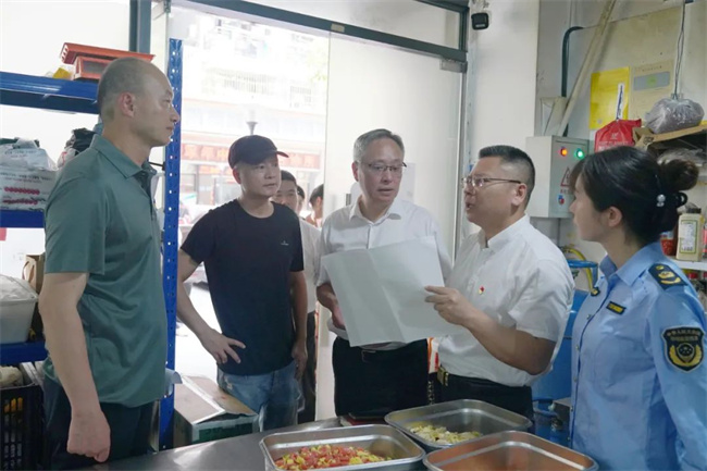 陳宗勝局長帶領(lǐng)市、區(qū)市場監(jiān)管局及監(jiān)管所一行圍繞市民群眾關(guān)注的食品藥品安全等問題走訪調(diào)研沿街商鋪,突擊檢查餐飲店、便利店經(jīng)營情況,督促指導(dǎo)經(jīng)營者規(guī)范經(jīng)營和落實食品安全主體責(zé)任,引導(dǎo)共同參與社會共治。