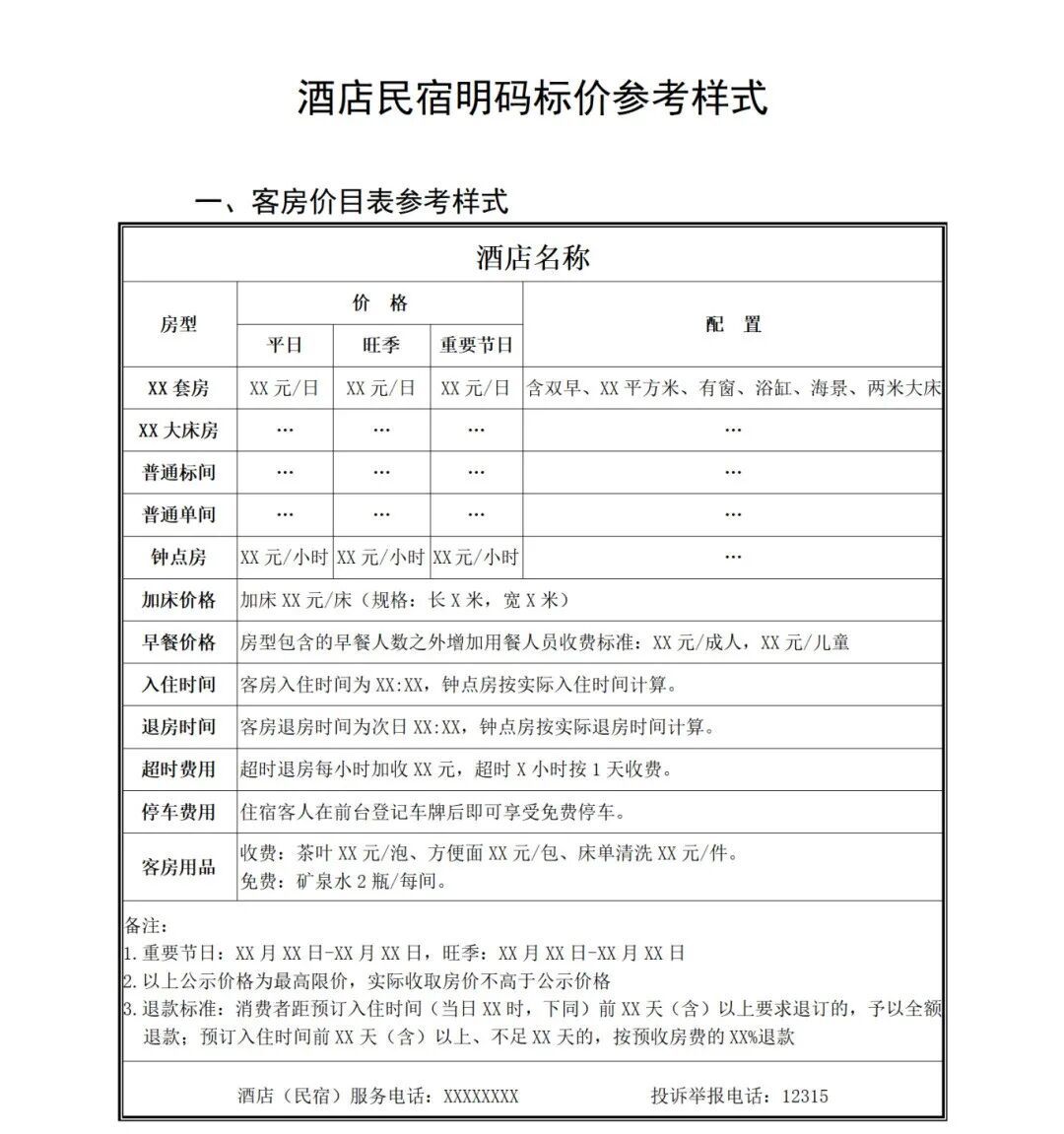 省市場(chǎng)監(jiān)管局發(fā)布酒店民宿收費(fèi)“十標(biāo)清”“十不得”指引