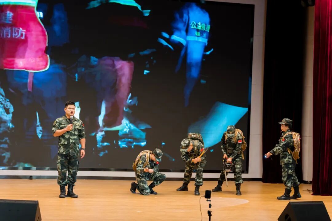 全國“最美退役軍人”、福建省“最美退役軍人”、福州市鼓樓區(qū)三坊七巷消防救援站副站長張?zhí)焖餍v 宣講會上通過情景模擬,現(xiàn)場還原客運服務(wù)場景,生動展現(xiàn)了中國鐵路南昌局集團有限公司福州車站客運車間助理工程師馬燕妮在平凡崗位上堅守軍人本色、守護旅客出行安全的點滴事跡;再現(xiàn)龍巖上杭縣古田軍號公益救援突擊隊隊長凌徵鵬和他的隊員們不畏艱險、沖鋒在前,守護人民群眾生命財產(chǎn)安全的動人畫面。