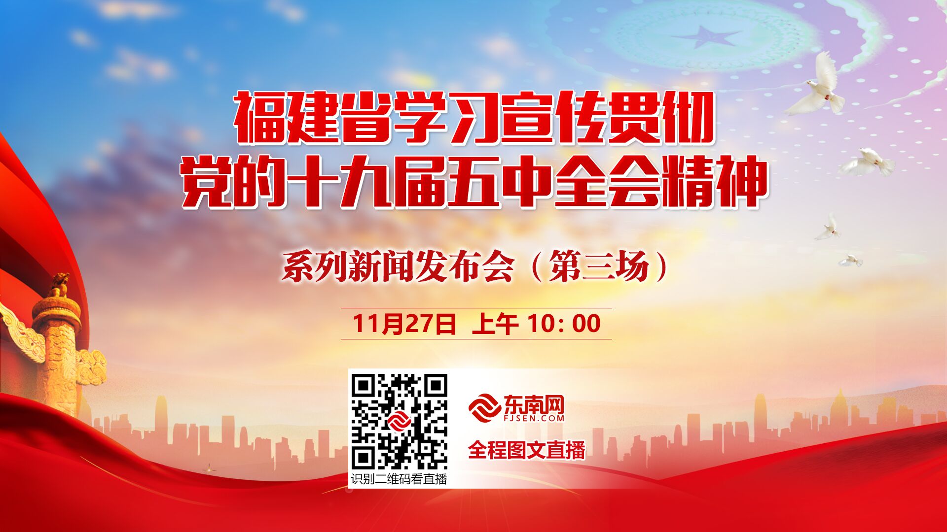 福建省政府新聞辦公室于11月27日上午10:00召開(kāi)福建省學(xué)習(xí)宣傳貫徹黨的十九屆五中全會(huì)精神系列新聞發(fā)布會(huì)(第三場(chǎng))。[詳細(xì)]